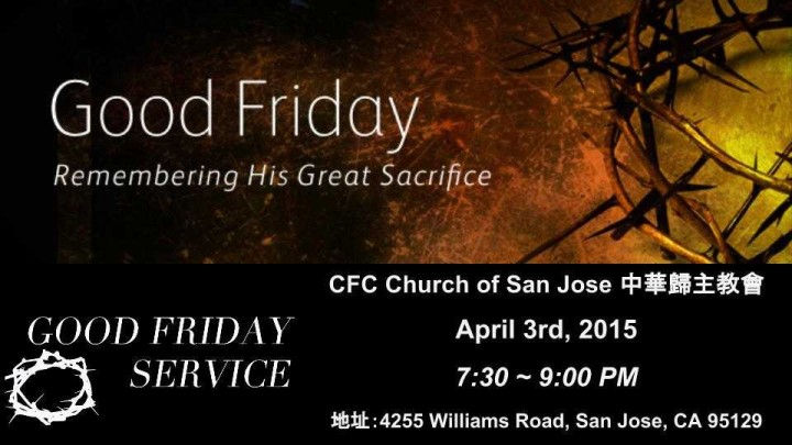 4/03/2015 週五 7:30 PM ~ 9:00PM 教會正堂