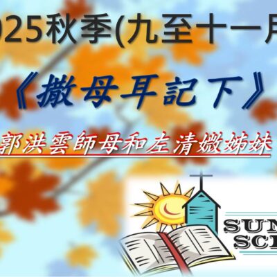 2025 秋季成人主日學(九月至十一月) September 6, 2025 Kathy liu 成人主日學 https://www.youtube.com/c/cfccsjvideosermon/live
